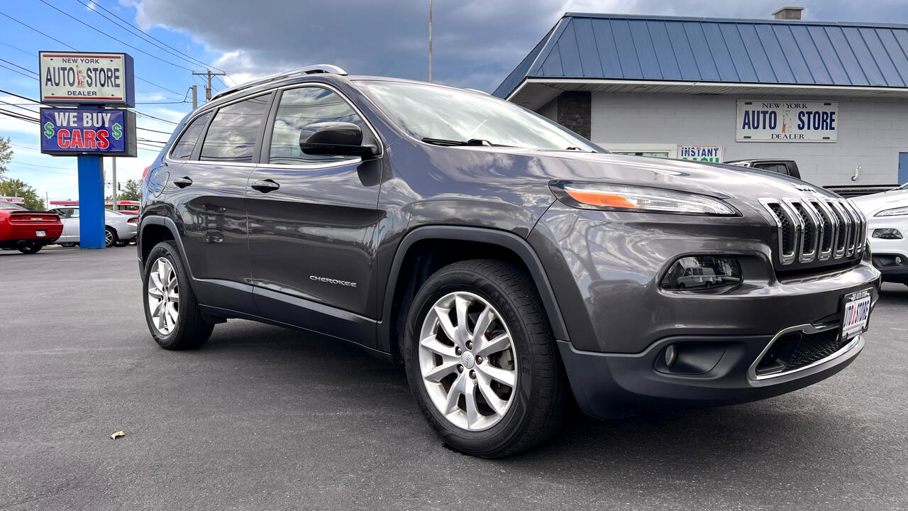 1-OWNER OUT OF STATE IMPORT ** NO RUST ** LOADED ** LOW MILES ** A sophisticated 2017 Jeep Cherokee Limited 4WD, finished in a sleek Granite Crystal Metallic gray that radiates understated elegance. With just 81k miles and a one-owner Carfax from out of state, this rust-free beauty has been meticulously maintained in a mild climate. Powered by a robust 3.2L V6 engine delivering 271 horsepower and paired with a 9-speed automatic, it offers a smooth 26 MPG highway while tackling any terrain with Jeep’s renowned Quadra-Trac II 4WD system. The luxurious black leather interior invites you in, featuring heated front seats, a heated steering wheel, and a panoramic moonroof that bathes the cabin in natural light. Stay connected with navigation and Bluetooth via the 8.4-inch Uconnect touchscreen, and enjoy the convenience of remote start for those chilly mornings. The Cherokee’s bold grille and polished alloy wheels enhance its commanding presence, while safety features like blind-spot monitoring ensure peace of mind. Fun fact: The 3.2L Pentastar V6 is a derivative of Chrysler’s award-winning engine family, known for balancing power and efficiency. This Limited trim combines rugged capability with premium comfort, making it ideal for urban commutes or off-road escapes. Don’t miss this opportunity to own a versatile, one-owner Jeep Cherokee that’s ready for your next journey! This vehicle comes fully serviced, NYS Inspected, and warrantied by The Auto Store. Extended warranties up to 100,000 additional miles are also available!